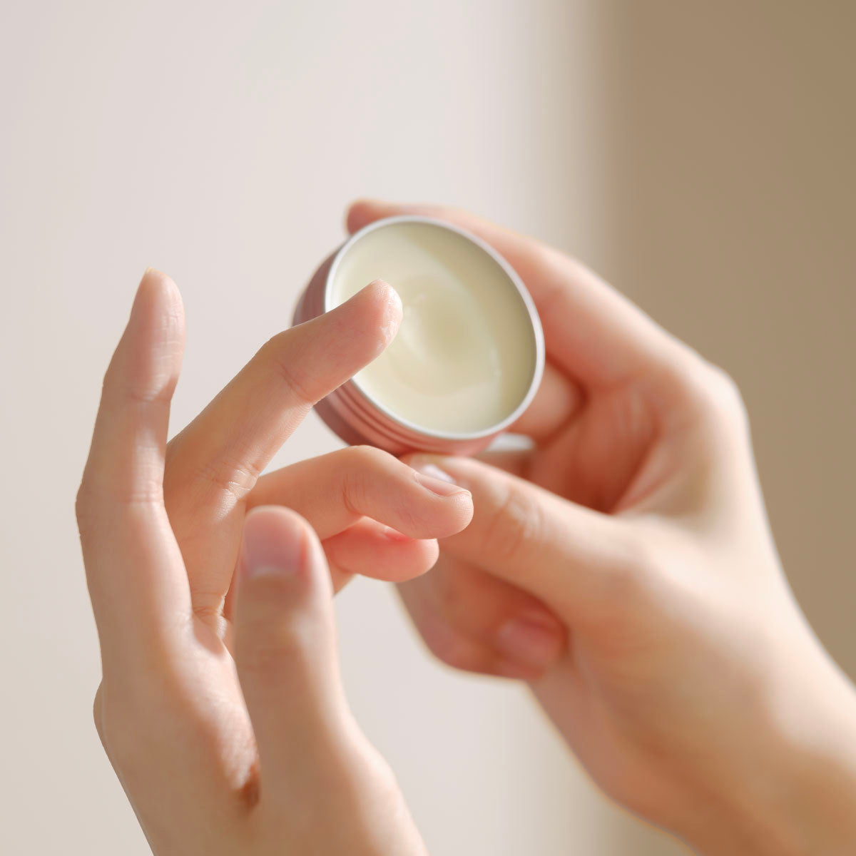 お好みの香りのバームを、カサつきが気になる部分にひと塗り。特に手首やうなじ、耳の後ろなど体温が高いところに塗ると、動きに合わせてふんわりと香りが広がります。